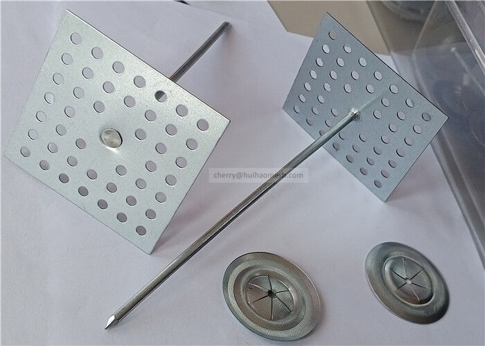 Os ganchos de isolamento de base perfurada são feitos de prego metálico e base perfurada quadrada.